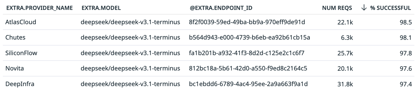 For example, below are the tool calling accuracies of the top 5 DeepSeek Terminus providers (all quite good!).